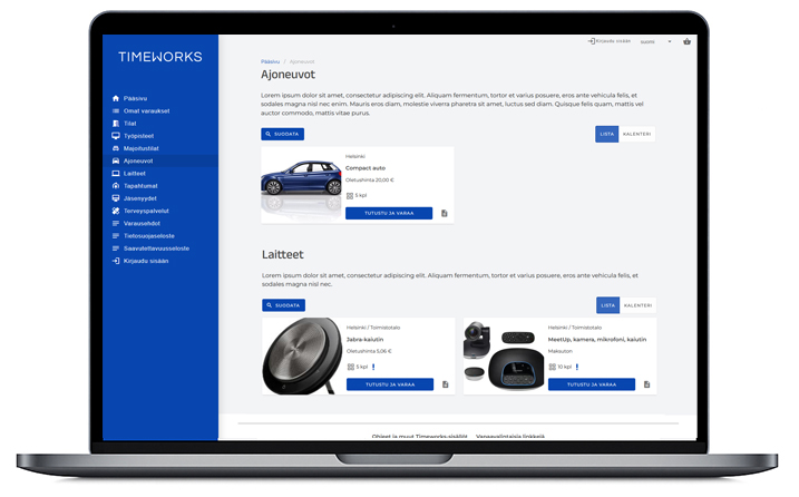 Timeworksin välinevaraukset tuovat laitteiden ja työvälineiden hallinnan osaksi samaa järjestelmää, jota käytetään tilojen ja työpisteiden varaamiseen.